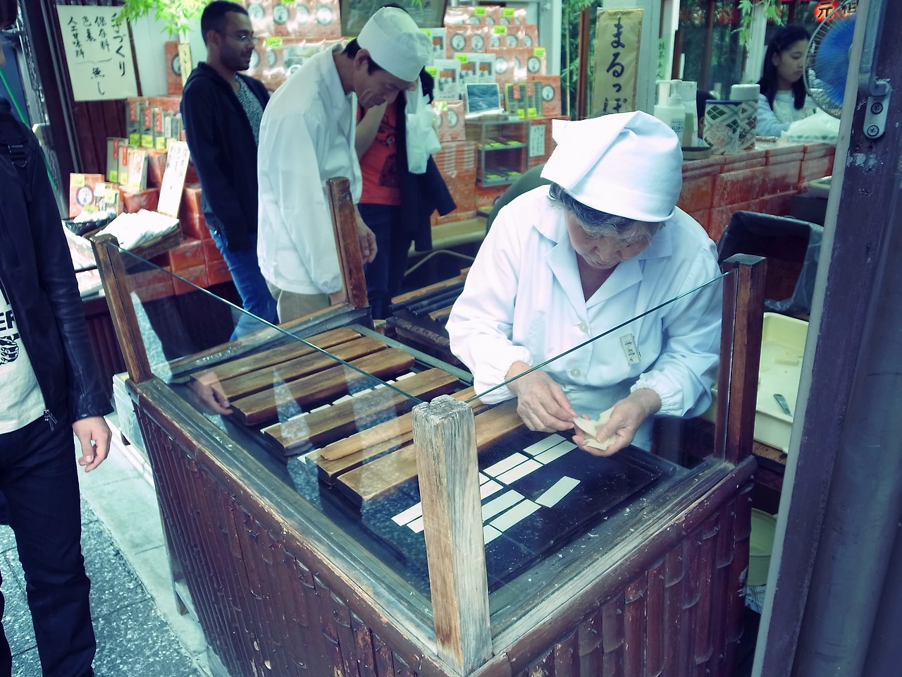 많은 여자들에게 여행의 꽃은 주전부리다. 일본을 여행한다면 더욱 그러하다. 눈으로 먼저 유혹하는 주전부리들이 여행객의 발길이 닿는 곳에 촘촘히 깔려 있다. 신사로 가는 좁다란 골목도 예외는 아니다. 무얼 먹을까 심각하게 고민하다 이내 한 입 베어물고 품평(?)을 하는 여성 여행자들의 모습이 정겨웠다.