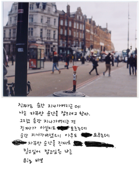 무뚝뚝한 영국인들의 다정한 주름. 퉁명스럽게 던지는 염려. 무심한 듯 참견하며 기꺼이 도움을 주었던 순간들. 나에게 런던은 첫 서양, 첫 유럽, 아시아를 벗어나 처음 발을 디딘 땅, 첫 혼자만의 여행, 첫 카우치서핑이었으므로. 그 많은 처음의 경험과 마음들이 한국에 돌아오고 나서 '런던 병'이 되어 나를 덮쳤다.