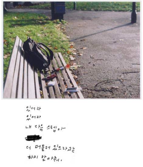 같은 날, 나보다 먼저 콘서트를 위해 홍콩으로 떠난 이반은 나에게 열쇠를 건네주면서 뒷일을 부탁했다. 매일 앉아서 커피를 마시던 탁자에 편지를 써두고, 미리 약속한 비밀의 장소에 열쇠를 잘 숨겼다.