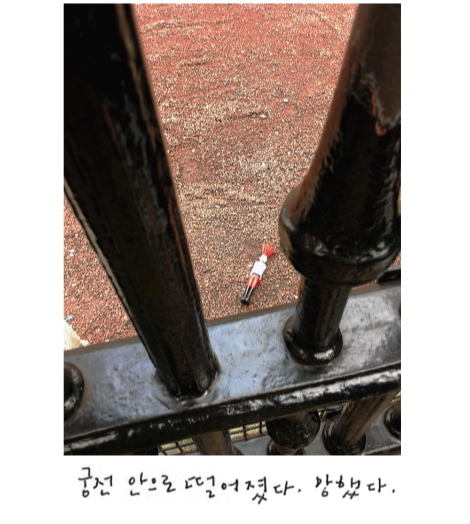 "기다려달라! 정말 미안한데 내 인형이 지금 저 안쪽으로 떨어졌다. 제발 주워달라!" (이 정도 느낌이었을까)
