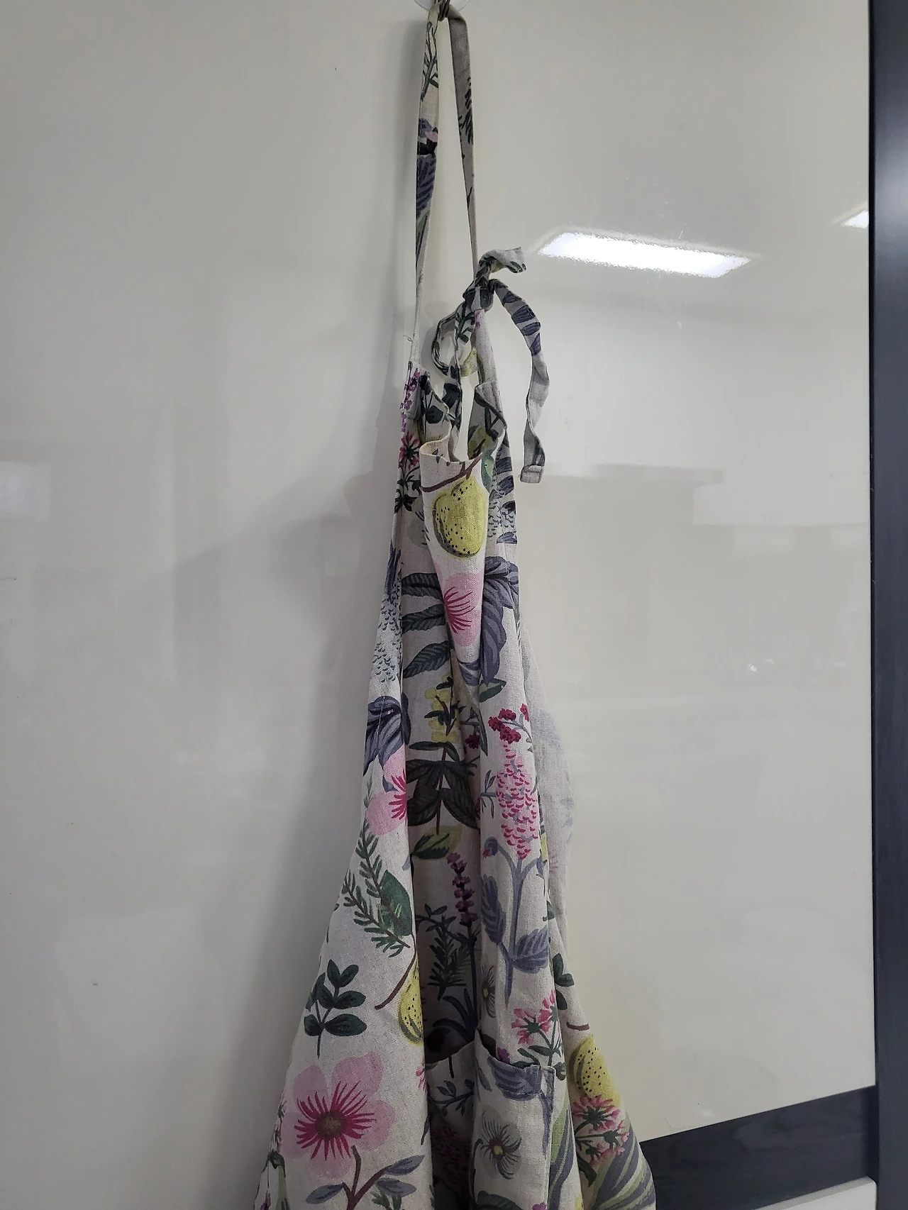 떨어진 과자부스러기 하나를 청소할 때도, 사과 하나를 깎을 때도 앞치마를 한다. 누런 바탕의 꽃무늬 앞치마. 무엇이, 어째서 나를 일하게 만드는지 모를 촌스러운 앞치마다. 조금 게으른 날에도 "앞치마를 하지 않아서 그래. 앞치마만 하면 할 수 있을 거야"하며 게으름을 합리화시켜 주는 도구이기도 하다.