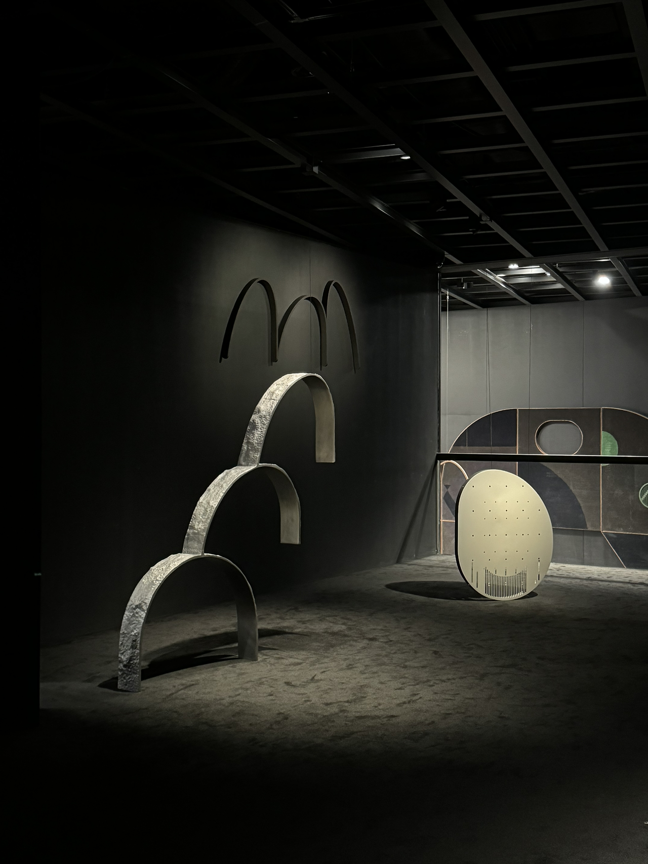 이 최소한의 둥글고 향토적인 구조물과 고즈넉한 연상을 이어가게 해주는 몇몇 단어들로 전시장에는 또 다른 시공이 마련된다. 어느 덧 나는 개울이 지줄대는 시골 초가집 처마에 앉아 있다. 여느 고요한 저물녁이다. 한바탕 멍 때리기 좋은 자리라고 생각했다.