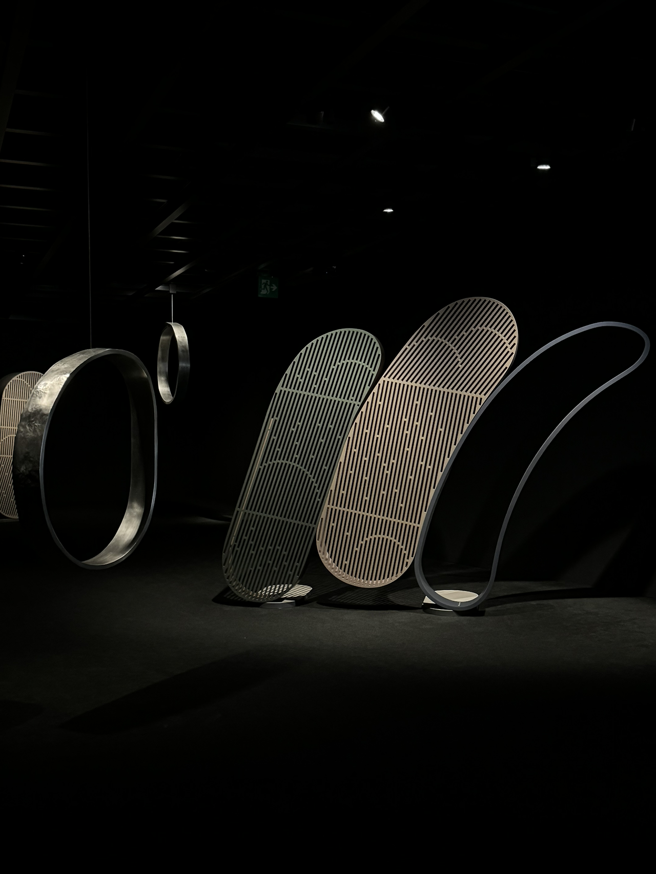 강서경 작가를 오래 좋아해온 사람으로서 모든 작업들과 나름의 방식으로 닿았는데, 그 중 특히 전시장 입구에 만들어 놓은 공간, 앞으로의 작품들과의 느린 교감을 준비할 수 있게 하는 도입같은 세 작품이 기억에 남는다. <정井 버들 #22-01,02,03> (2020-2022) 이라는 제목을 단 작품이다. 일종의 '멍 때림 자리' 라고 할까? 불멍, 달멍, 산멍을 하고 싶은 사람들을 위한 '멍-장치' 라고나 할까?