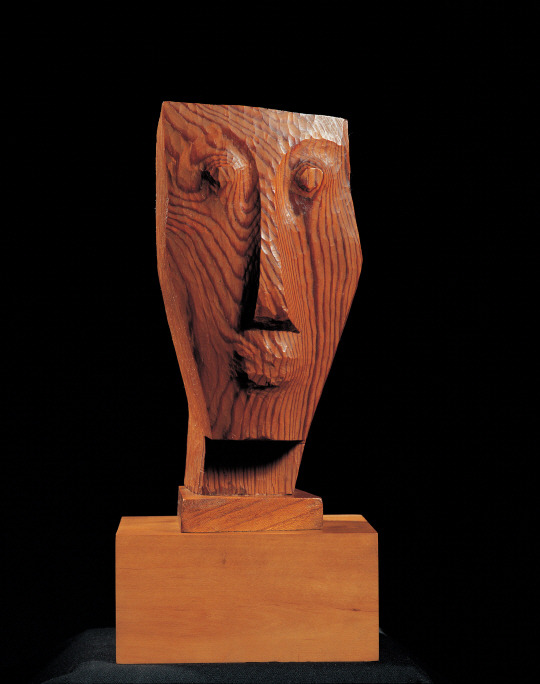 알고보니 잘려나간 귀와 이마, 사각으로 처리된 두상은 이 재료의 삶, 즉 나무도막의 출처에서부터 비롯된 것이라고 한다. 학자들은 이 조각에 사용된 금강송이 1960년대 초반 숭례문 중건공사때 나온 목재 중 하나라고 보는데, 당시에 이 목재들을 서울대와 홍익대 등 미대에 재료로 나눠줬다고 한다. 이 조각이 건축 부재에서 비롯되었기 때문에 두상임에도 뒤통수가 둥글지 않고 머리 뒷부분이 잘린 듯 납작한 것이다. 두상이 납작해진 이유가 이러한들, 이 또한 중요한 조형적 효과를 낳는다. 형상을 더 단순화 하고 추상화하며 시선을 눈 코 입과 나무결에만 집중시키는 것이다. 거칠게 처리된 뒷면은 한 인간의 정제되지 않은 우둘툴둘한 내면과 존재양식을 보여주는 것 같다.