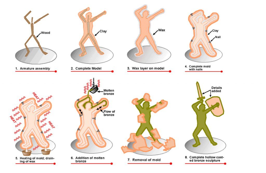찰흙으로 형상을 만든 뒤 석고로 캐스팅하여 그 안에 브론즈 등의 주물을 흘려넣어 굳히는 통상적인 조각 방식과 비교해보면 이 방식이 얼마나 특별한 결과를 낳는지 알 수 있다. 캐스팅에서는 '석고', '주물' 의 일반명사로서의 재료를 사용한다. 오늘 사용한 이 석고와 한달 뒤 사용할 저 석고는 물론 물질적으로 다르지만 같은 속성을 지니기에 조각 작품에 유의미한 차이를 가져오지 않는다. 그 결과 만들어진 이 브론즈 조각과 저 브론즈 조각은 공장에서 찍어낸 듯 같게 된다. 주물 캐스팅은 복제를 가능하게 한다.