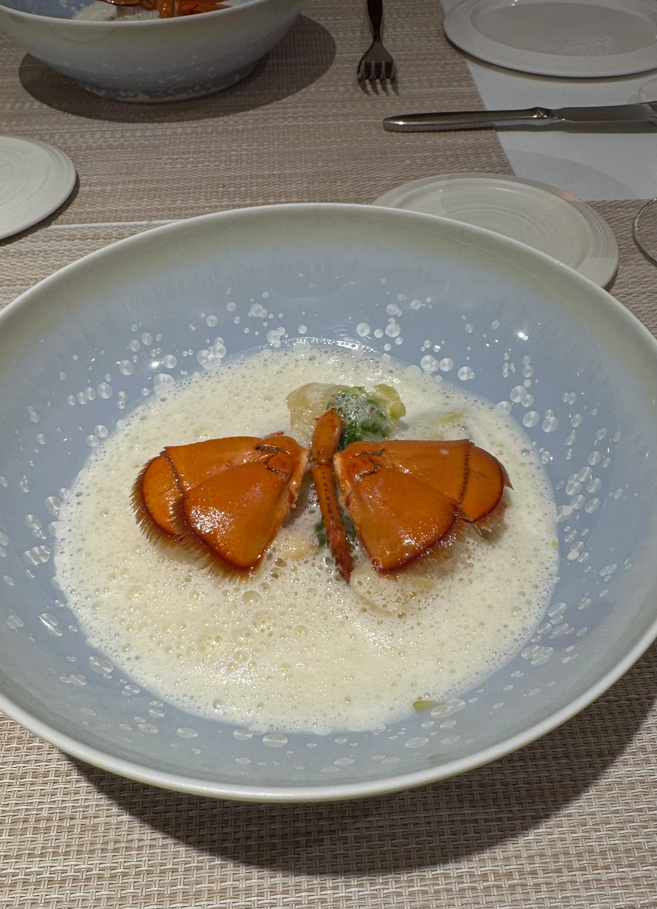 때때로 꿀을 빨아먹는 나비처럼 그는 한 접시 앞에서 우아하게 날아다녔는데 예를 들면 지금 나온 '날개 달린 거품 랍스터' 플레이트 위에서 그는 식사의 동선을 그려 나갔다.