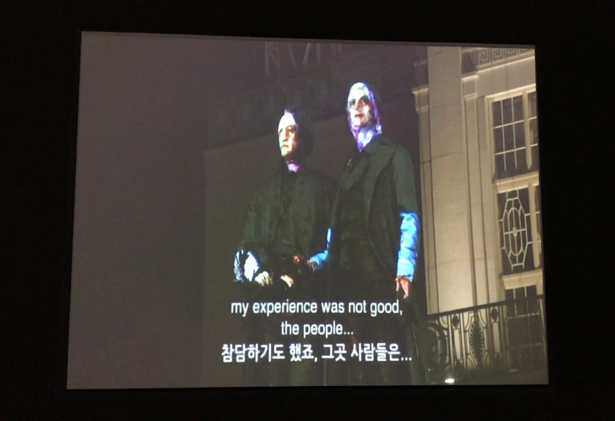 하지만 8개의 프로젝션을 하나하나 주의 깊게 보면서 나는 점점 이들과 가까워지고 있었다. 고개를 갸우뚱하며 관조하는 대신에 이들의 공포와 상처를 나도 느끼고 있었던 것이다. 아무리 스스로에게 현 상황을 논리적으로 설명한들 어떤 치유도 되지 않는, 설명이 관여할 수 없는 아픔 자체를 이들은 겪고 있었다. 인간사는 원래 비극적이야, 라는 차갑고 무책임한 말의 덮개를 들춰보면 나날이 고통받고 폭력성 앞에 무력한, 실제 사람들이 있었다. 마지막 관 김구 조각상 앞에서 나는, 고통을 어떤 역사적, 심리적, 사회적 맥락으로 설명하든지 간에 이러한 고통을 겪는 사람들이 있다는 것 자체가 잘못된 것이고, 이를 개선하기 위해 행동을 해야 한다고, 생각하고 있었다.