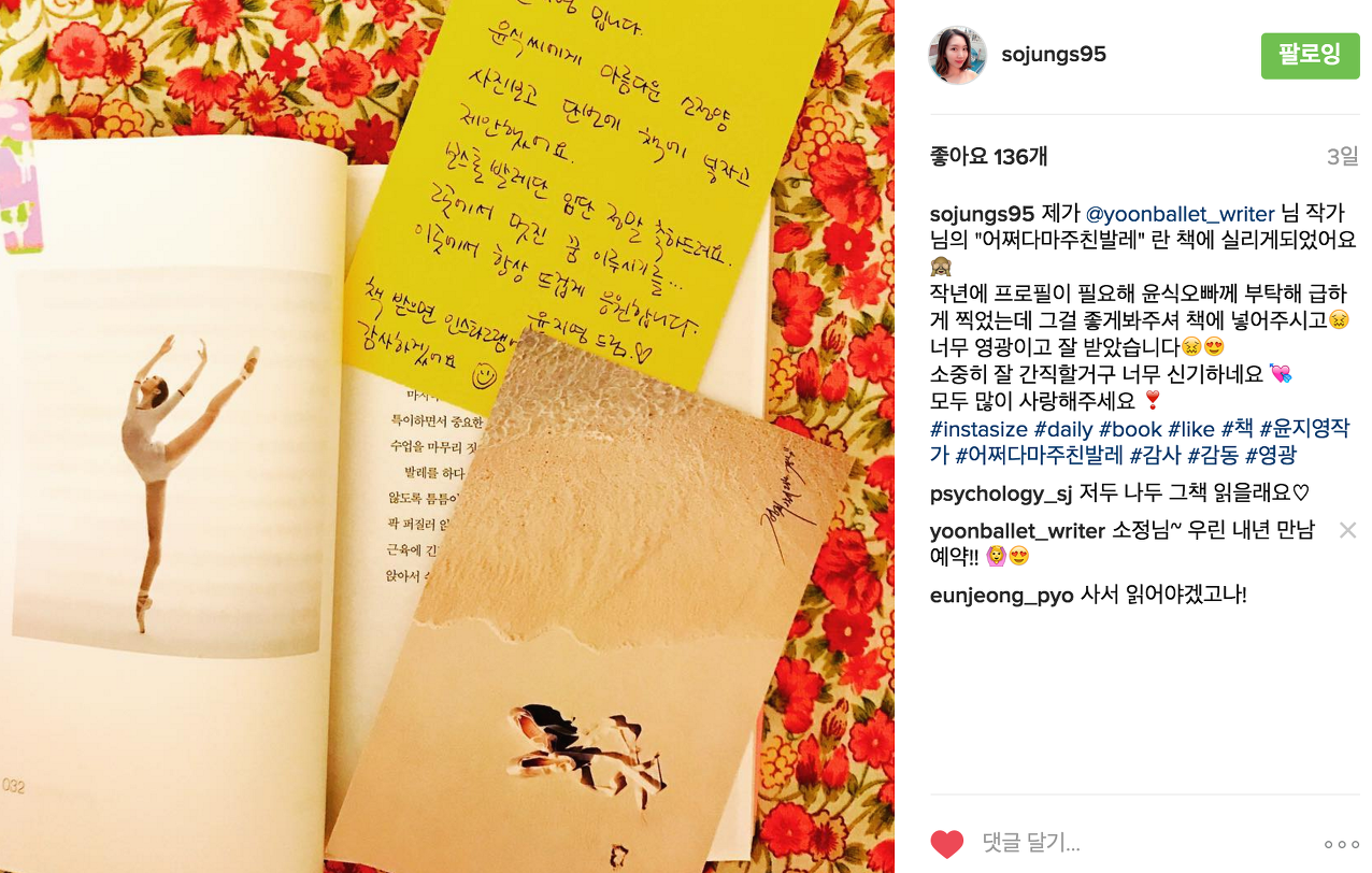 #취미발레윤여사 #어쩌다마주친발레 #윤지영작가 #발레리나이은원 #인증샷 #ballet #balletbook #브런치북프로젝트 #카카오브런치 #브런치북수상작가 #스타일북스 #북스타그램 #책스타그램 #작가스타그램 #이_책이_당신의_일상에_휴식같은_친구가_되길_바랍니다 #응원해주세요 #워싱턴발레단 #세계로뻗어가는책 #저자보다출세한책 #일반인과프로무용수가함께보고공유하는책