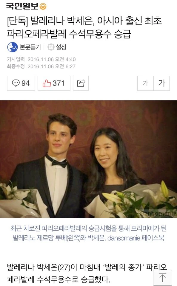 2016.11.4 '새벽 파리 오페라 발레단의 박세은 발레리나로부터 사진 한 장이 도착했다'