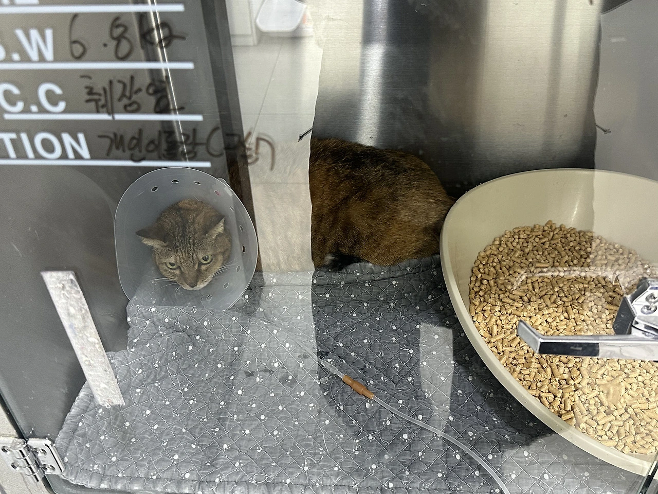 검사 결과, IBD로 인한 구토 증상도 있지만 췌장염 수치가 정상보다 높다고 했다. 아는 집사님 중에 췌장염으로 반려묘를 떠나보낸 분이 있었다. 그 때문이었을까. ‘췌장염’이라는 말을 듣는 순간 머릿속이 새하얘졌다. 의사 선생님은 3일 정도는 입원을 하는 게 좋을 것 같다고 했다. 나는 고민할 틈도 없이 알았다고 했다. 겁쟁이 바바는 돌처럼 굳어 투명한 유리장 안에서 덜덜 떨고 있었다. 냐옹 소리도 내지 못한 채였다.