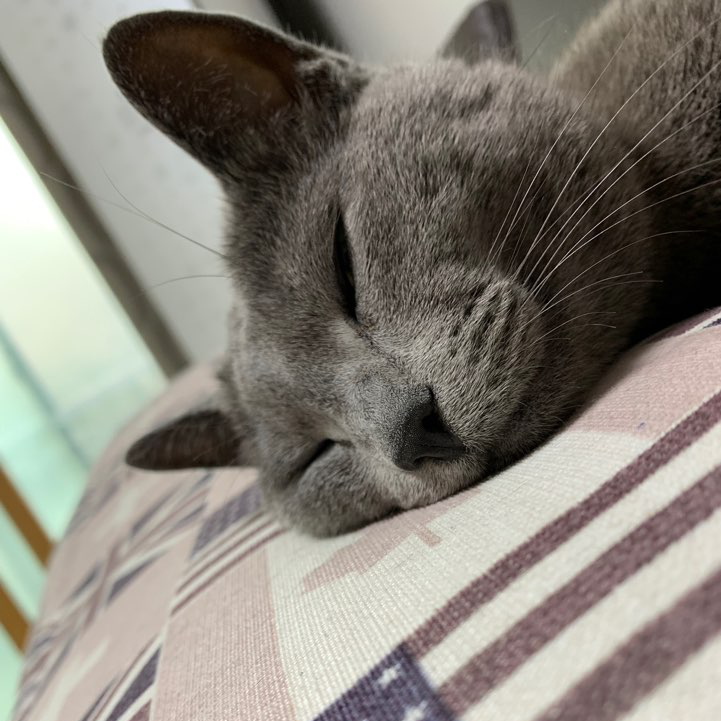 자다 일어나면, 첫째 고양이 사또의 뽈록한 회색 코가 눈에 들어온다. 고요한 가운데 내 얼굴 앞에서 새근새근 숨을 쉬는 고양이의 콧소리가 들린다. 우리는 이처럼 늘 한 베개에서 고양이와 사람이 얼굴을 맞대며 자고 있는 모양새로 있다. 내 코를 사또 코에 맞대고 슬며시 부벼본다. 잠에서 깬 사또는 누운 상태로 앞발을 쭉 내밀어 기지개를 켰다가, 더욱더 내 얼굴에 찰싹 달라붙으려고 한다.