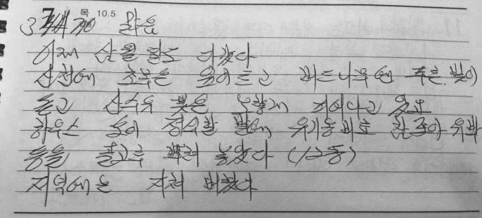 그날의 날씨와 농사일을 나열식으로 적은 이 단순한 문장들이 왜 이리 가슴을 먹먹하게 만들었는지. 무언가 힘들고 지쳤던 마음에 아빠의 하루가 위로가 되었나 보다.