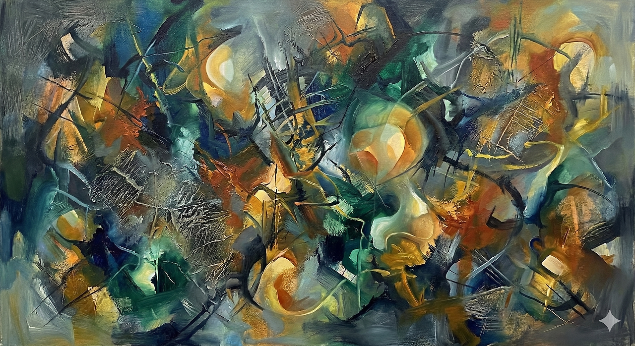 에너지가 넘치고, 색이 풍부하고, 곡선과 직선이 역동적으로 교차하고 — 보기에는 좋습니다. 그런데 이게 선생님을 표현한 거라고 했을 때, 저는 좀 의아합니다.