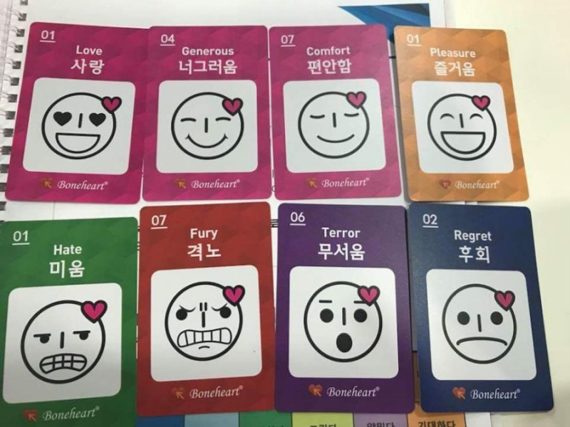 처음 본하트 카드를 만든 계기는 2012년 어느 날 친구와 이야기로 시작되었습니다. 아이들을 키워가면서 정서가 메말라 간다는 것이었습니다. 정서를 알려준 카드를 만들면 좋겠다는 의견으로 시작했습니다. 기존에 나와 있는 정서카드는 대부분 이미지 형식입니다. 정서를 알려주는데 텍스트로 만들지 않아서 자의적 해석이 될 소지가 많습니다. 하지만 생각보다 참 어려운 작업이었습니다. 왜냐하면 감정을 이성적으로 설명한다는 것은 단지 의미만 알고 있는 것이 아니라 여러 활용가치와 쓰이는 용도 등 이미 있는 것과 비교에서 확연히 차이가 없으면 현실적으로 불가능하기 때문입니다. 본하트 역량카드나 소질카드 보다 더 어려운 작업이 바로 본하트 정서카드였습니다. 이론적 배경이 궁금한 분은 '정서우산' Boneheart Emotion Umbrella(http://bizwriting.kr/220703982726)을 참고하세요.