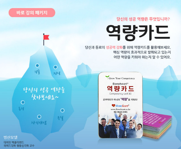 BoneHeart™ 역량카드는 세계적인 500대 기업에서 자주 쓰는 역량모델을 기초로 하여 한국 정서에 맞는 54가지 역량을 엄선해서 활용하기 쉽습니다. 본하트 역량카드는 교육, 면접, 평가, 상담, 모임 등에서 다양한 방법으로 활용가능하게 설계되어 있습니다.