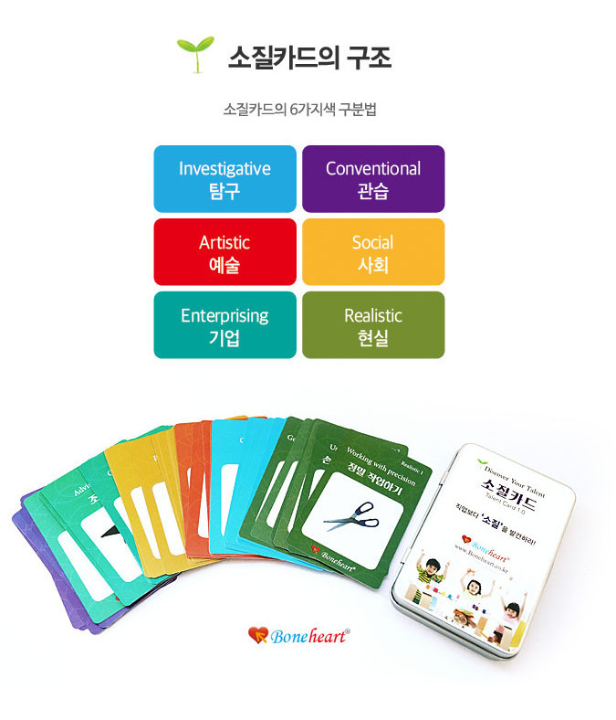 코치나 선생님들 사이에서는 이미 본하트 역량카드 2.0가 출시되어 사랑을 받고 있습니다. 현재, 중고등학교에서 구입하면서 진로교사들은 "역량카드가 청소년에게 어려우니 좀더 쉽게 만들어주면 좋을 것 같아요"라는 의견을 주셔서 소질카드를 개발하게 되었습니다. 성인용이 아닌 청소년용이 필요하다는 말씀~ 감사합니다. 좋아하는 일이 소질로 개발되고, 잘할 수 있는 일이 직업으로 연결된다면... 행복한 삶과 인생이 가능하겠지요?