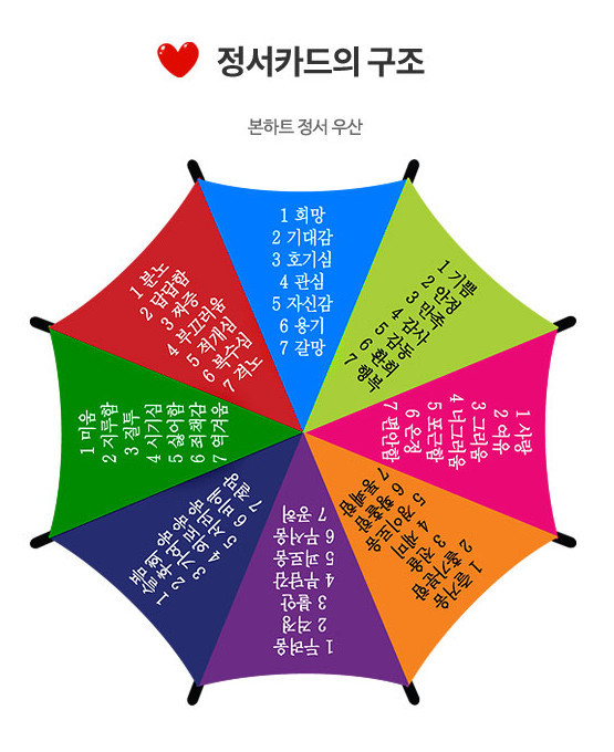 본하트 정서카드는 8가지 색깔로 나누어진 [정서카드]를 개발하는 프로젝트에 착수하게 되었습니다.