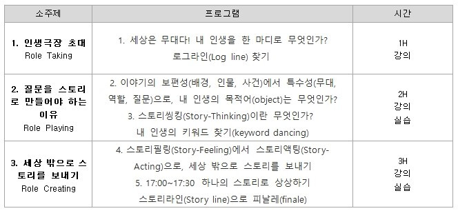 1. 9:30~10:20 세상은 무대다! 내 인생을 한 마디로 무엇인가? 로그라인(Log line) 찾기