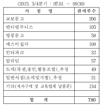 교보문고가 가장 많이 판매가 되었고, 그다음은 예스이십사가 많이 나간다. 저자 구매와 교육업체 납품분도 많이 나가는 편이다. 요즘은 여러 곳에 넣지 않아도 괜찮다. 교보문고와 예스이십사만 올리는 경우도 잦다.