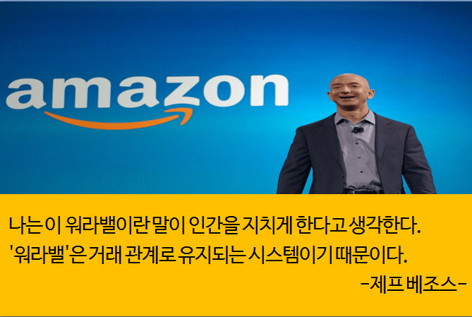 베조스는 “워크 라이프 하모니(Work-Life Harmony), 즉 일과 삶이 조화를 이뤄야 한다. 일과 일 외의 사생활은 보다 포괄적이고 거시적인 관계여야 한다. “가정에서 행복한 시간을 보낼 수 있다면 행복한 에너지가 충만한 상태로 출근할 수 있다. 그리고 직장에서 즐겁게 일한 뒤에는 역시 건강한 에너지를 가지고 집에 돌아갈 수 있다. 사회생활을 하다 보면 회의가 시작되자마자 회의실 분위기를 바닥으로 만드는 사람이 꼭 있다. 누구도 그런 사람이 되고 싶지는 않을 것이다. 출근하는 것만으로도 주위 사람들에게 활력을 줄 수 있는 인간이 되고 싶다. 최근에는 워라인도 이야기되고 있다. 워라인은 일과 삶의 통합(Work-Life Integration)을 말한다.