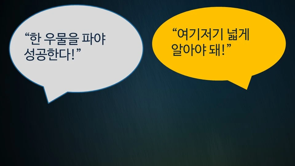 우리는 흔히 "한 우물을 파라! 그게 정답이다"라고 말한다. 일면 맞는 말인데, 현실에서는 한 우물을 파지 않았던 사람이 성공한 케이스가 넘쳐난다. 과연 한 우물을 파는 게 맞는가? 무조건 스페셜리스트가 되라고 했던 시대가 있었지만 시대가 변하면서 달라지고 있다.