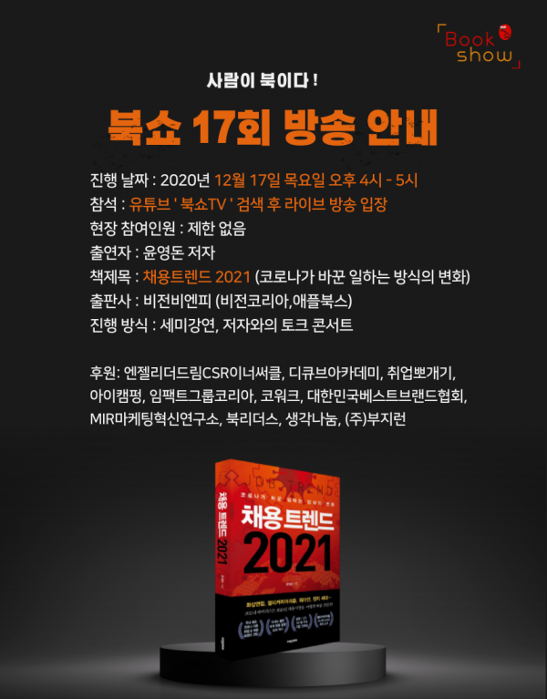 교육비 : 무료(채용 트렌드 2021 저서 지참 유익함~)