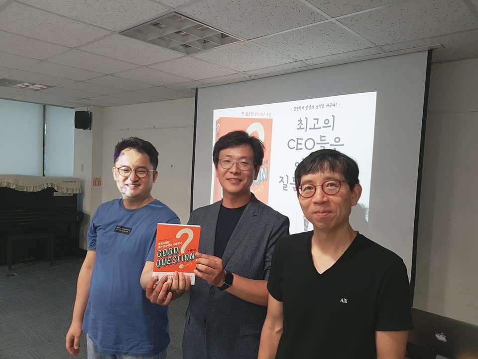 ___마지막 질문이시군요. 저는 제 인생의 목적이 원래 친구를 만나는 거잖아요. 좋은 친구들, 어른다운 친구들을 만나는 게 삶의 목적인데, 근데 이 친구를 만나려면 맨손으로 만나면 안 돼요. 선물이 있어야 돼요. 제가 말로 하면 사람들이 싫어하고 너무 시끄럽잖아요. 요즘 젊은 친구들은 잔소리 듣는 것을 별로 안 좋아하잖아요. 잔소리는 싫어하는데 책을 써서 주면 듣든 안 됐든 그분이 원할 때 들을 수 있으니까 책을 좋아해서 책을 선물로 주면 좋습니다. 물론 책은 내 돈 내고 사야 돼요. 그냥 공짜로 받으면 안 되고 근데 돈을 주고도 자기가 선물 받았다고 느낄 정도가 되는 것은 책밖에 없어요. 그래서 이제 선물이라고 하는 영어 단어 프레전스가 이제 현재이기도 하고 선물이기도 한데, 선물하는 삶을 살고 싶은 마음이 있어요. 그래서 나한테 책을 계속 쓰게 하는 건 좋은 친구들이 일단 있고 좋은 친구들하고 나눌 만한 나눌 만한 가치가 있는 선물들을 주고 싶어요. 피터 드러커 박사님 말로 하면 녹음해서 타이핑을 다른 분이 도와줬잖아요. 지금은 네이버 클로버노트로 하면 말을 텍스트로 짧은 시간에 변환이 가능하잖아요. 어쨌든 내가 나눌 거리가 가지려면 나눌 거리가 이렇게 쌓여가는 삶을 살아야 하고 그것을 다시 책으로 내고 좋은 친구들하고 책으로 나누고 이런 것 때문에 계속 글을 쓰게 되는 것 같아요. 나누고 싶은 삶에 대한 열망 같은 게 있어서 ‘제가 왜 다음 책을 못 쓰냐’ 다음 책 주제가 ‘이끄는 질문’ ‘리더를 위한 질문’ 책인데 리더의 질문 책을 쓰려고 하니까 아직 축적이 덜 돼 있어요. 내가 리더로 살았던 경험이 길지는 않았었거든요. 저는 요즘에 책 쓰는 게 목적이 아니고 책은 그냥 부산물 같은 거라고 생각해요. 예전에 책을 못 쓰는 것에 대한 스트레스를 많이 받았는데 ‘지금은 그래 책이 안 나오는 건 내가 책을 쓸 만큼 삶의 축적이 이루어지지 않아서다!’라고 그냥 마음이 편하고 인정해요. 내가 이 책을 쓰려면 ‘이끄는 질문’을 쓰려면 “내가 ‘이끄는 삶’에 대한 경험과 ‘이끄는 삶’에 대한 사유가 더 연구해야 된다!”라고 하는 것을 이해하게 됐어요. 차근차근 쌓아나가시면서 나중에 남이 무엇을 쓰든 내가 쓸 수 있는 책은 내가 써야 될 몫이잖아요. 예를 들면 ‘질문’과 ‘리더십 코치로 사는 것’과 이 둘 다를 굉장히 좋아하는 리더들한테도 정말 유용한 책이 되어야 해요. 제가 리더로서 탈바꿈하는 과정에 대한 경험들이 “이것은 필연적이겠다!”라는 생각들을 많이 하게 되었습니다. 아마 [이끄는 질문] 자체의 책은 한 4~5년 이후에나 나올 수 있을 것입니다. 지금부터 쓰고 있다고 하더라도, 그리고 그게 아마 제가 같이 만나는 리더들 이야기 이런 것들도 다 녹아나게 되겠죠. 드러커 박사님을 존경했던 게 한 5년마다 주제를 바꿔서 그 세계를 탐구하고 정리해가면서 자기 삶의 경계도 넓히시면서 사람들한테 선물이 된 책을 썼잖아요. 저도 그런 방식이어야 된다고 생각이 들어요. 그때그때 나눌 수 있는 것들은 나누겠지만 그러니까 제가 혁신가의 질문처럼 제 삶을 담아내서 애를 쓰면서 써야 되는 책들은 5년에서 10년에 한 권 정도씩은 써야 되지 않을까라는 생각이 들고 ‘이끄는 질문’ 이렇게 주제지요. 어쨌든 원래 혁신의 질문도 [질문의 연금술]이었어요. 제가 주제로 잡았던 건데 그 책은 시간이 좀 걸릴 것 같아요. 저도 제 삶의 스토리가 좀 쌓이고 싶고 나중에는 지금은 아니고 나이가 좀 더 들고 동화책을 내보고 싶은 마음이 있어요. 심지어 저는 나중에 동화책을 내는 출판사하고 싶은 마음이 있어요. 다시 동심으로 돌아가고 싶어요. 이 동화책이 사실 사람의 마음을 이렇게 따뜻하게 해줘요.