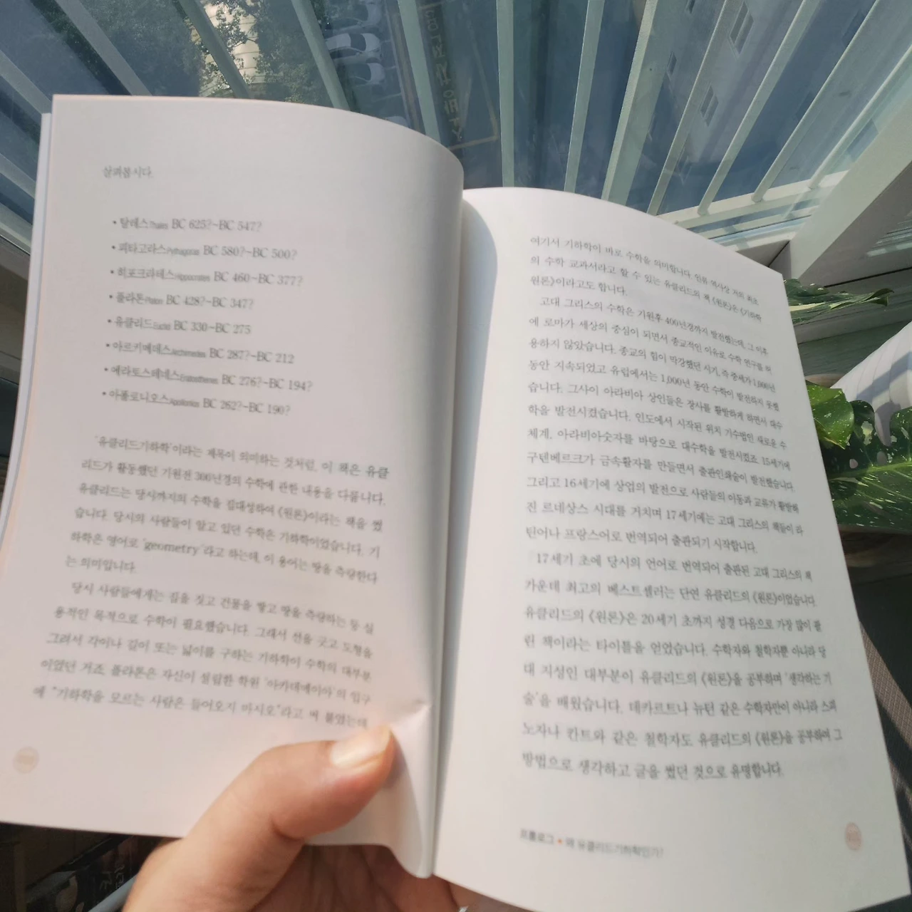 기원전 300년경의 수학인 유클리드기하학을 통해 잃었던 수학적 사고력과 문제해결력을 키워주는 책이다. 고대 그리스에서는 집을 짓고 땅을 측량하는 등 실용적인 목적으로 수학이 필요했기에 선을 긋고 도형을 그려서 각도나 길이 등을 구하는 기하학이 수학의 대부분이었다. 한정된 지식으로 위대한 문명을 일궈낸 고대 그리스인의 사고법으로 수학의 본질을 일깨울 수 있다는 것이 이 책의 핵심이다.
