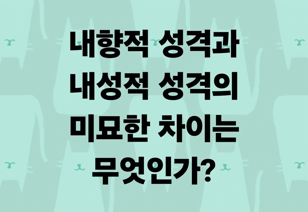 '내향적(內向性) 성격'은 주로 조용한 공간에서 독서, 공부, 영화감상 등과 같이 한 자리에서 집중하면서 해야 하는 일들을 하면서 에너지를 충전한다. '내성적(內省的) 성격'은 본질적으로 자신의 생각을 겉으로 터놓지 않고 혼자서만 생각한다. '내성적 성격'이란 겉으로 드러내지 아니하고 마음속으로만 생각하는 다소 부정적 면이 내포되어 있다.