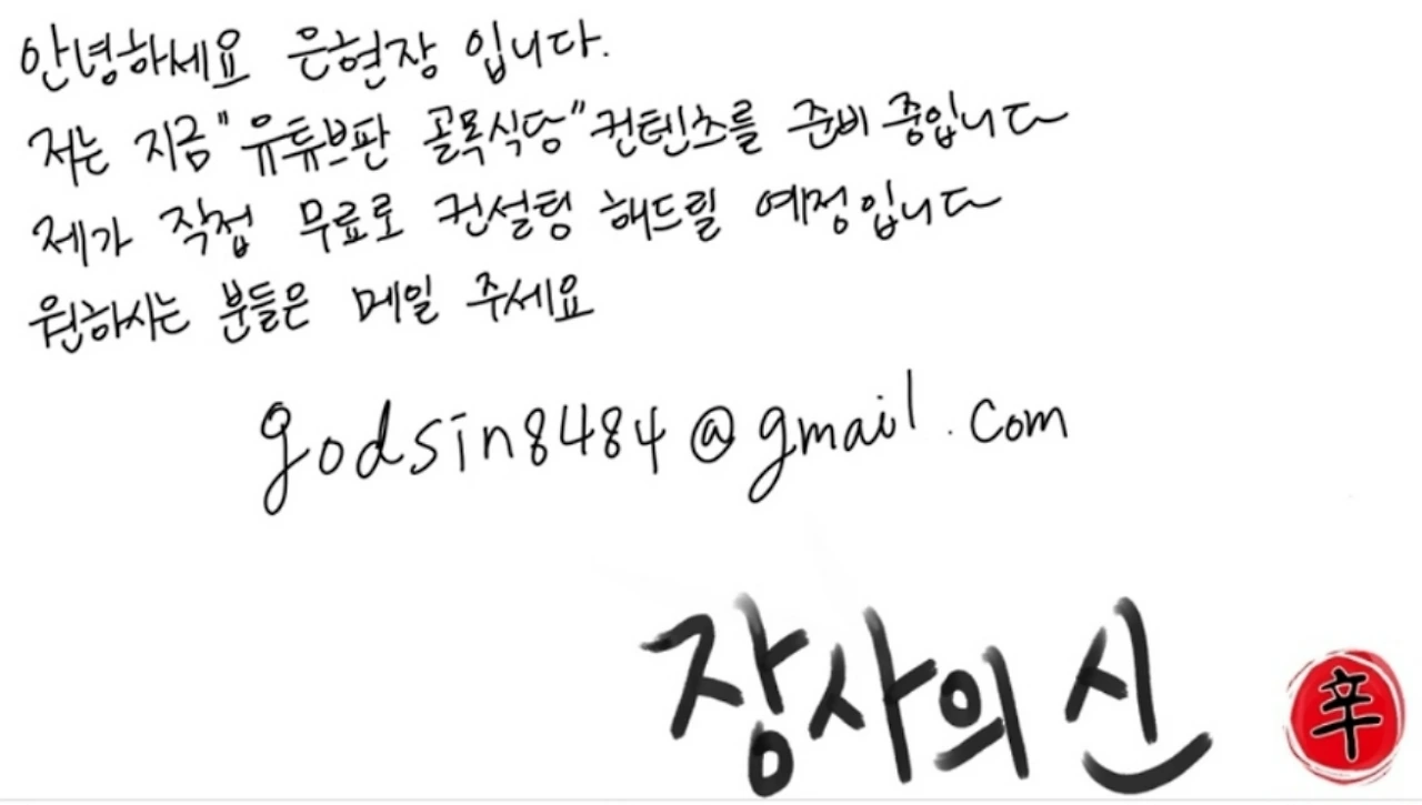 유튜브 채널 이름도 기존에 있는 [장사의 신]을 베껴왔다.