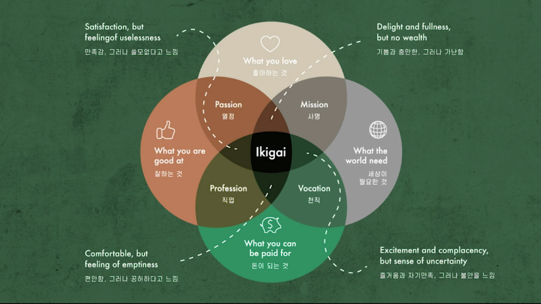 ‘이키가이(いきがい)’ 표를 만들어보시기 권해드립니다.