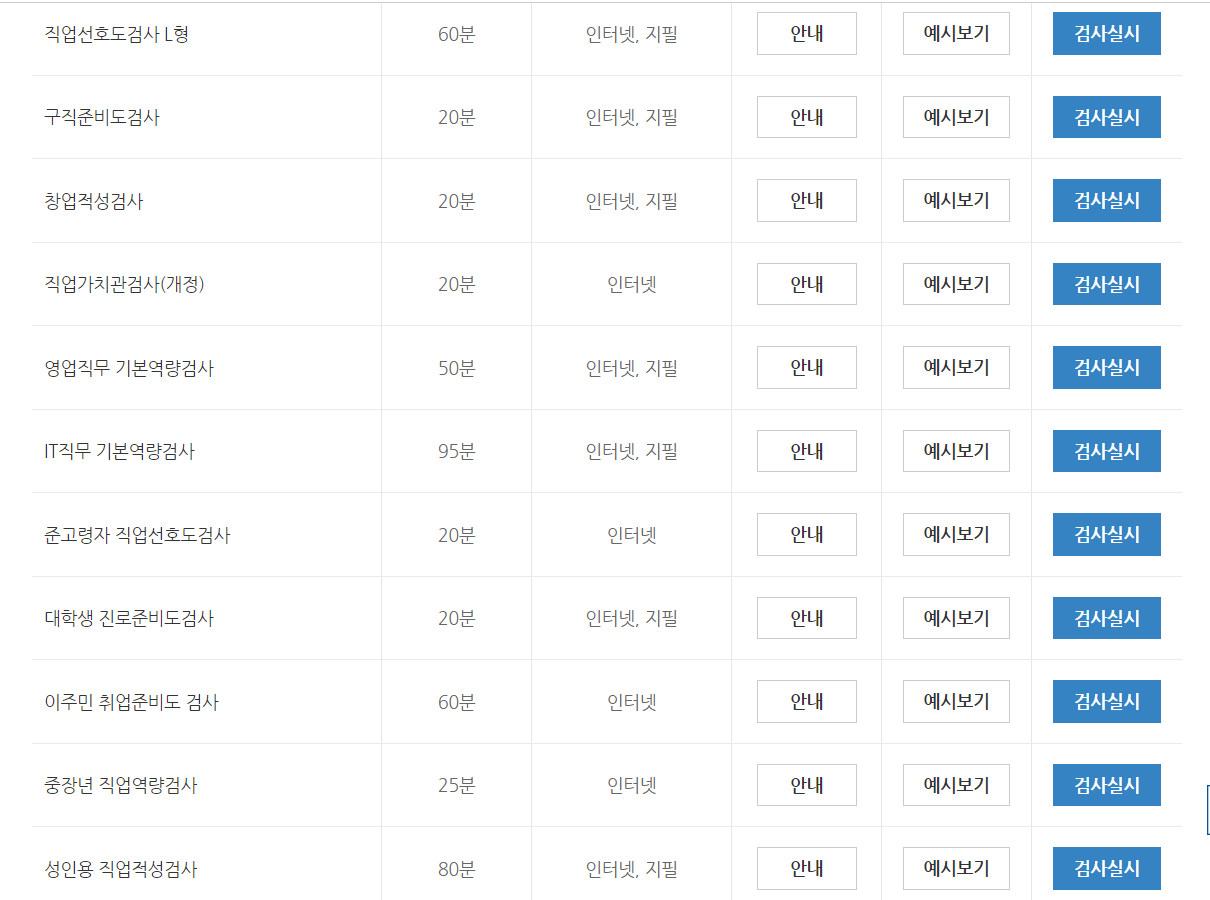 1. 노동부에 심리검사를 무료로 할 수 있습니다. - 직업선호도 검사