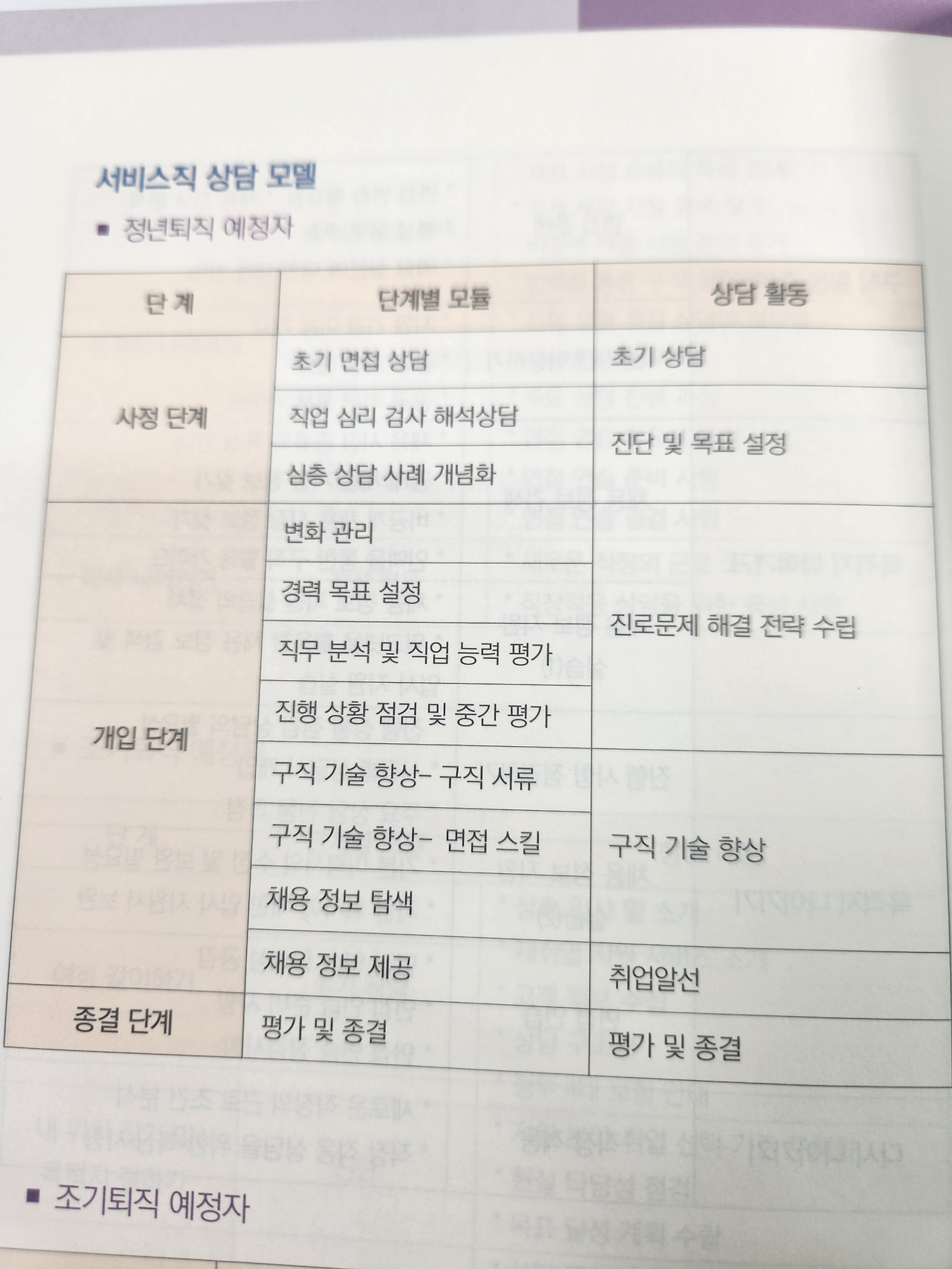 별지로 소개하는 5가지 내용은 각각 서비스 프로그램 구성 사례, 상담(컨설팅) 회차 구성사례, 컨설턴트 역량 표준, 윤리 표준 그리고 전직 서류 작성을 위한 프레임 및 예문 몇 가지이다.