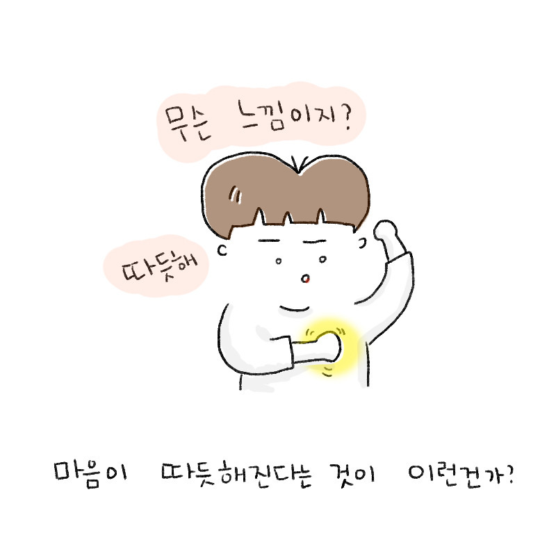 마치, 마음이 정말 있는 신체기관인 듯이 왼쪽 가슴 심장 아래쪽이 따듯한 느낌이 들었고,