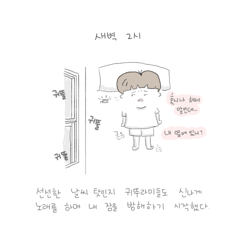제 방 창문 밖이 창고라 그런지 귀뚜라미들이 많이 있나 봐요. 잠을 잘 시간이면 매일같이 귀뚤귀뚤...