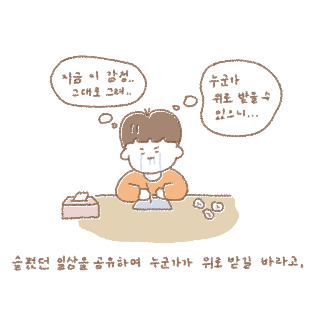 슬프면 슬픈 대로 기쁘면 기쁜 대로 누군가는 위로를 받고 누군가는 웃음을 지을 수 있겠지 라는 생각으로 기록을 해나갔는데요. 많은 사람들과 다양한 감정들을 공유해 온 시간이 차곡히 기록되어 있더라고요.