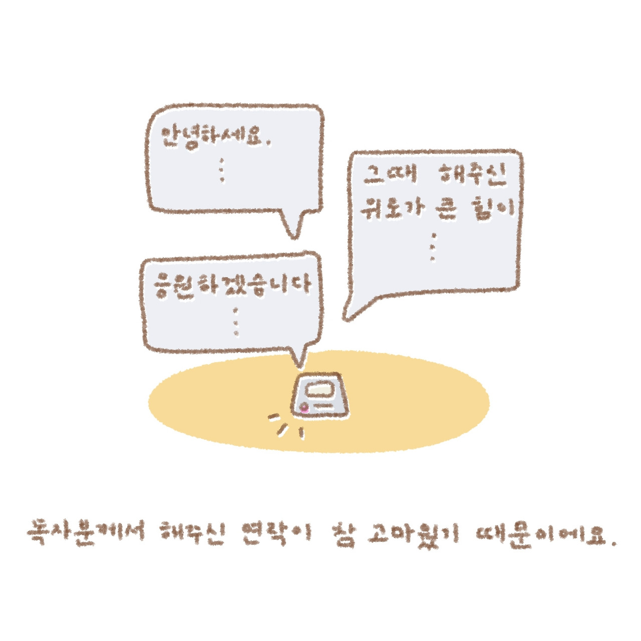 그럼에도 놓지 않았던 이유는 포기하고 놓고 싶을 때 즈음에 독자분들이 연락을 주셨기 때문이에요.