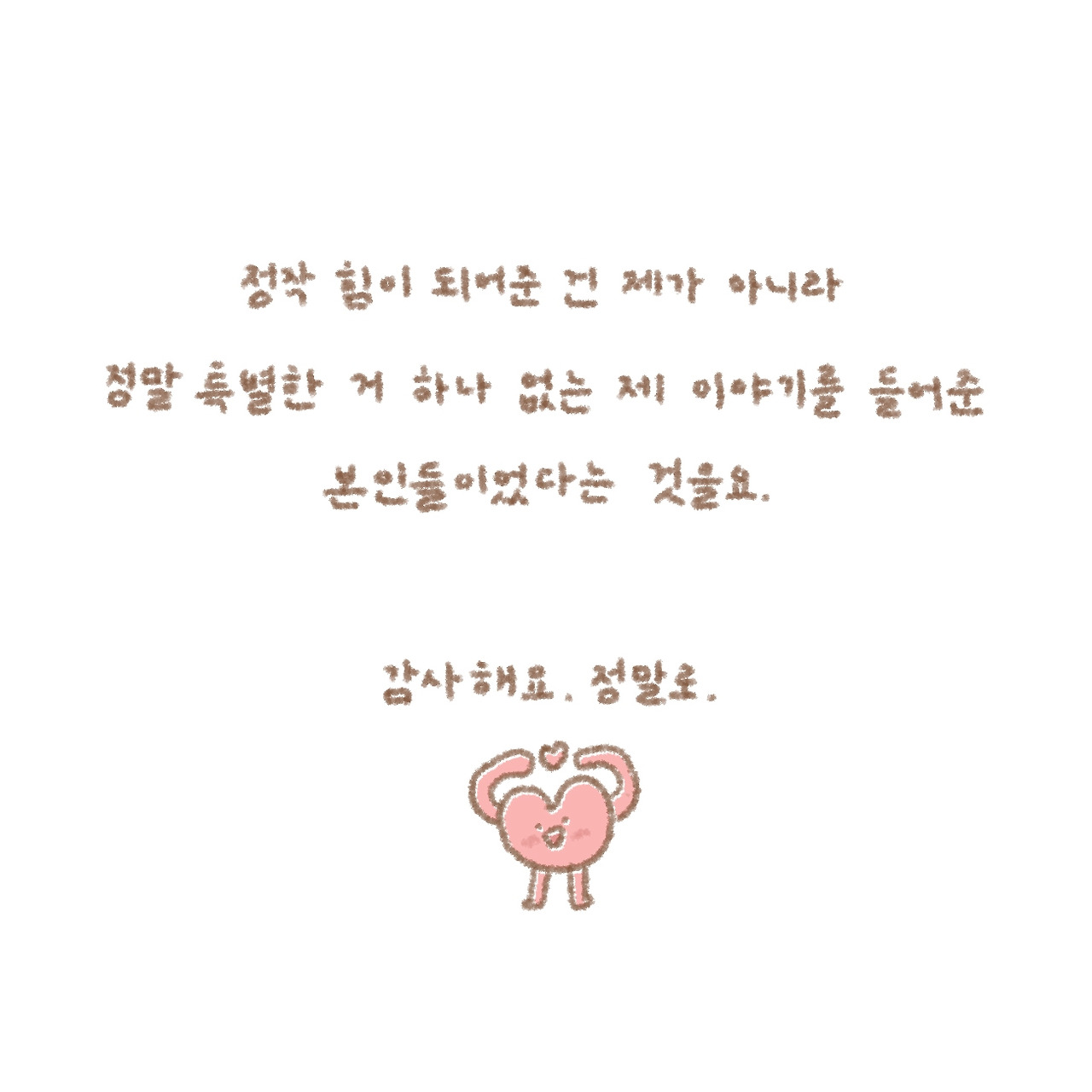 정말 위로를 주고 힘이 되어준 사람은 제가 아니라 지금까지 함께 해준 많은 분들이었다는 걸요.