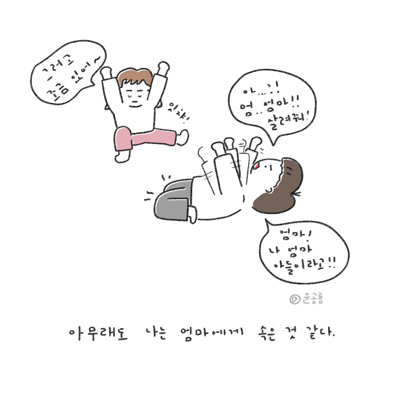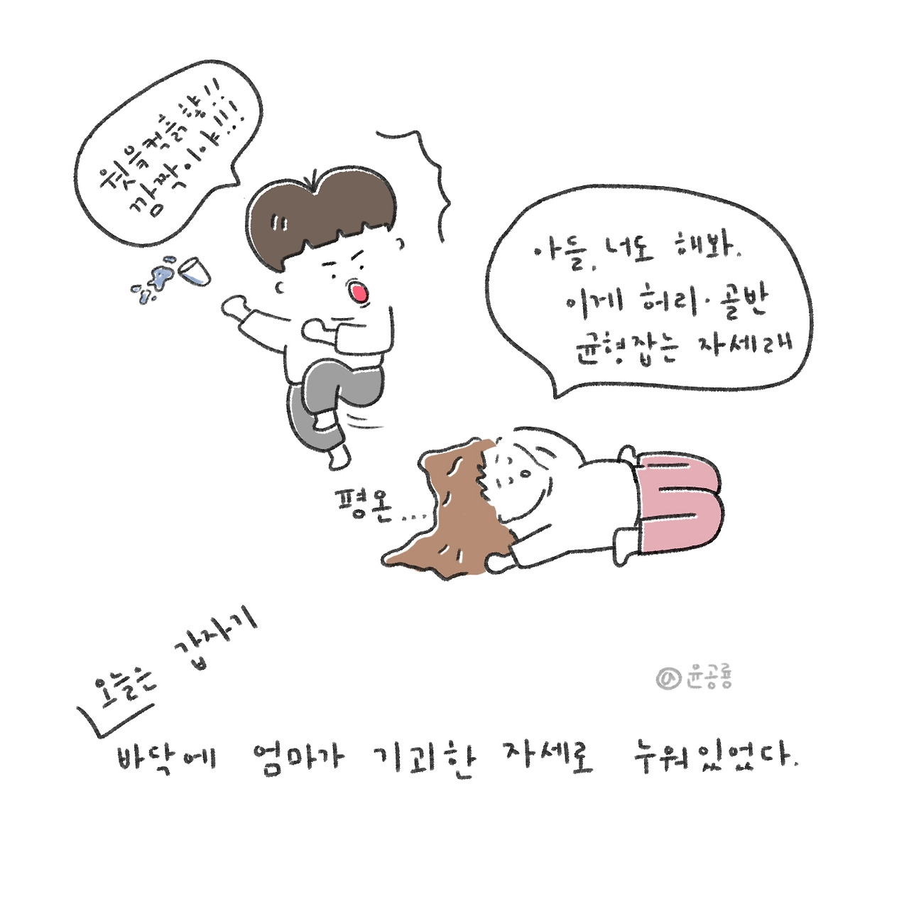 어느 날 거실에 괴상한 자세로 누워있는 엄마를 보고 엄청나게 놀랐었는데,