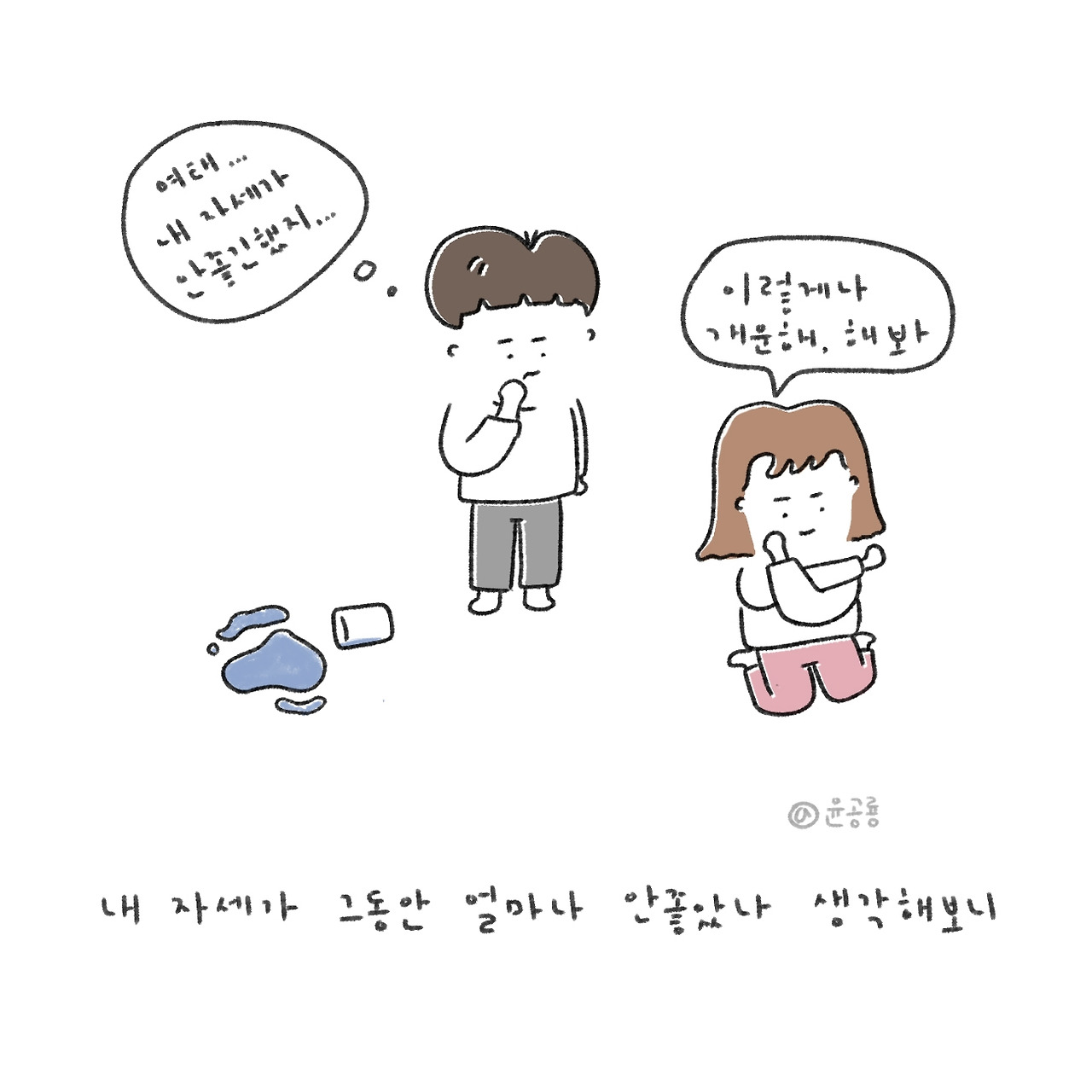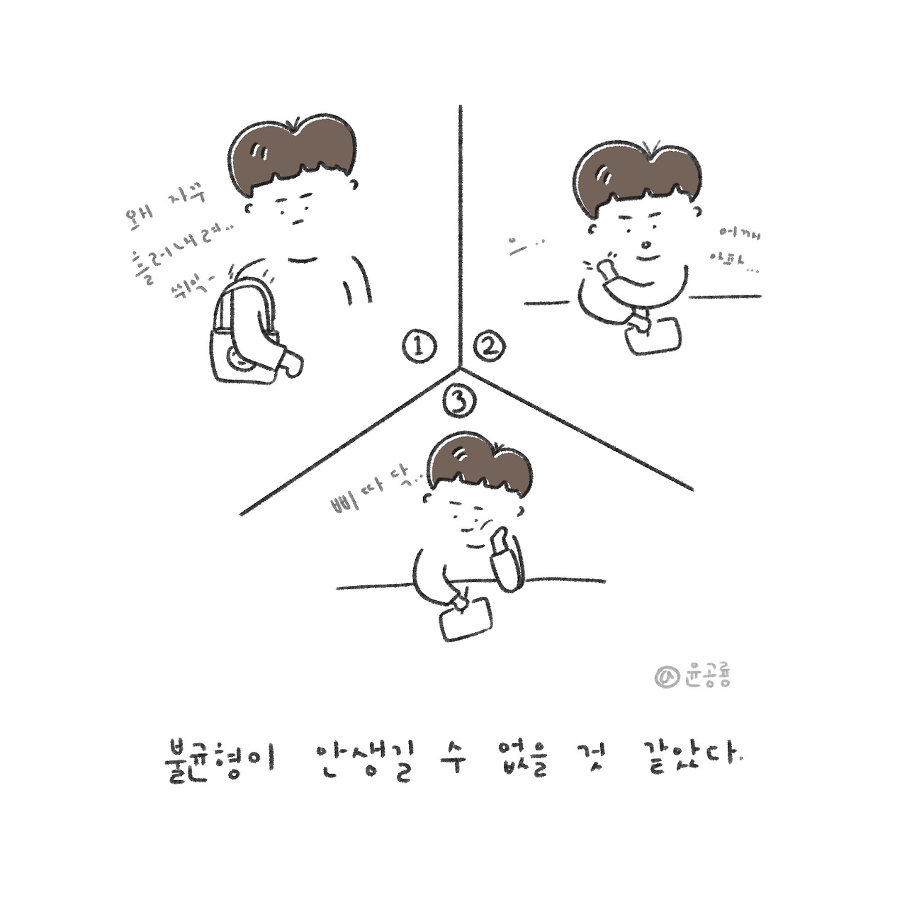 그동안 제 자세를 생각해보니, 삐딱하고, 몸이 불균형한 지 자꾸 어깨에 매는 가방도 내려가고,