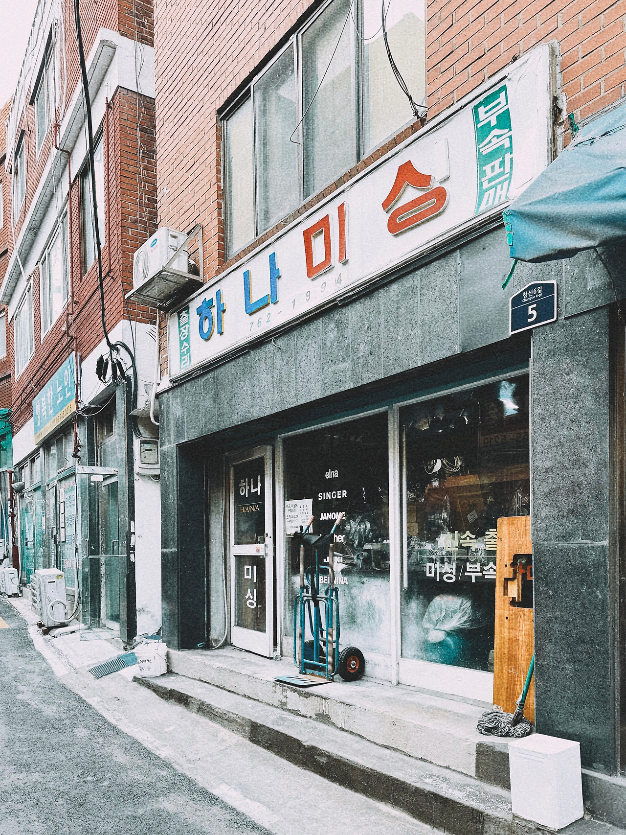 간판만 봐도 한 세월 느껴지는 미싱기 수리집.