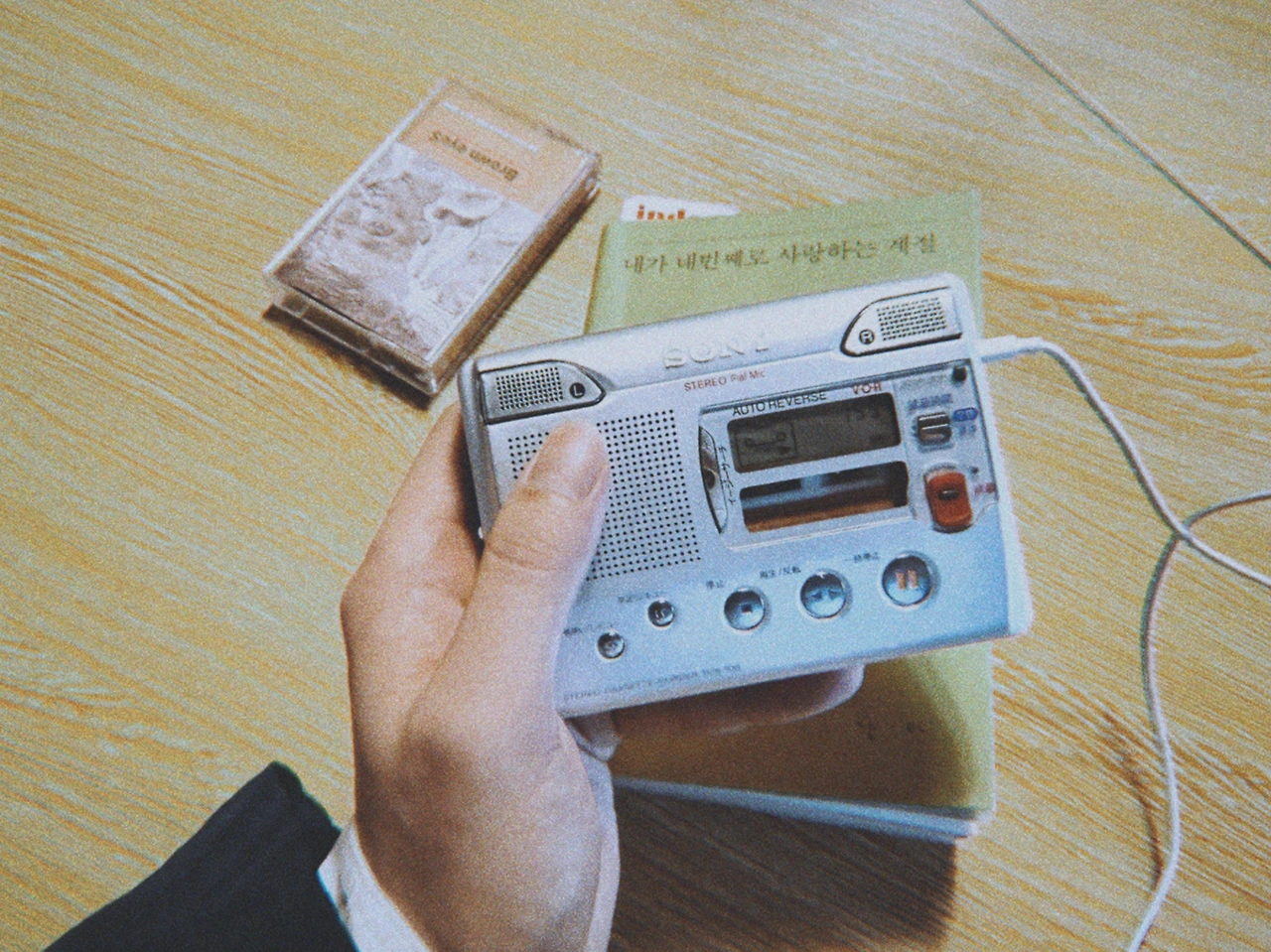집을 나서기 전 [SONY 카세트테이프 플레이어]와 [브라운아이즈 1집]과[내가 네번째로 사랑하는 계절]을 가방에 집어넣었다. 일정 사이에 잠시 시간이 뜰 것 같아 근처에 가보지 않은 카페도 골라뒀다. 오후 3시 정도가 되자 2시간 정도 여유가 생겼고 미리 봐뒀던 카페로 발걸음을 옮겼다. 새로운 공간에 간다는 건 누군가를 처음 만나는 것과 비슷한 설렘이 있다. 그런 순간에 내가 좋아하는 것들을 만지고, 읽고, 들을 수 있단 건 꽤 재밌고 행복한 작업이다. 커피를 주문하고 혼자 앉아도 좋을 대형 원탁 테이블 위로 가방에 담아 온 행복 아이템을 쏟아냈다.