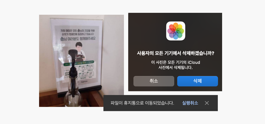 위 그림들은 인간 실수, 휴먼 에러에 대한 예시입니다. 휴먼 에러는 언제나 발생할 수 있는 것이기 때문에 이를 예방할 수 있는 가이드를 제공해주어야 합니다. 위 우측 그림은 파일을 삭제하기 전에 휴지통으로 이동하거나, 복원할 수 없는 경우 사전 확인 팝업을 주는 것이 휴먼에러를 고려한 설계의 예인데요, 개인적으로 좋았던 경험은 구글 드라이브에서 파일을 삭제했을 때 제공해주는 피드백 메시지에서 실행 취소를 할 수 있도록 해주는 것이었습니다. 이를 보고 상당히 친절하고 사용자에게 너그러운 설계라고 생각했던 경험이 있네요.