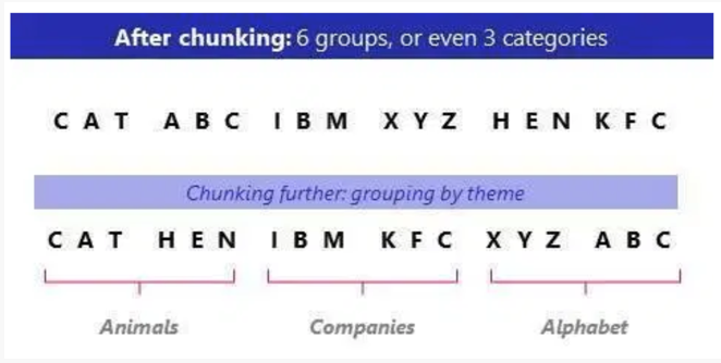 전화번호를 하이픈으로 구분했을 때 더 외우기가 쉬우며, 단어를 의미 있는 것들을 묶었을 때 장기 기억으로 갈 수도 있습니다.