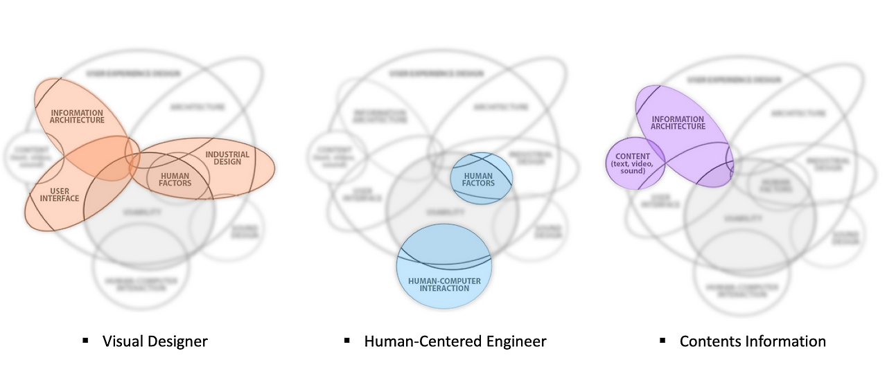 그래서 UX 관련 직군들이 집중하는 학문들은 각기 다 다릅니다.