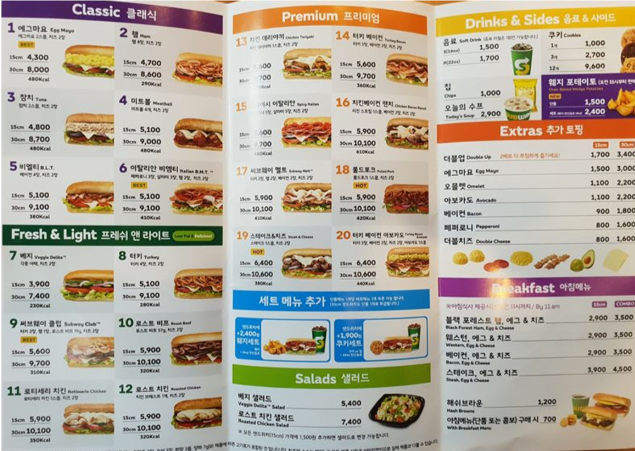 인지 부하와 관련된 이론으로 힉의 법칙이 있습니다. 이는 의사 결정에 걸리는 시간은 선택지의 개수와 복잡성과 비례해서 늘어난다는 법칙인데요, 실생활에서 볼 수 있는 나쁜 UX의 예로 서브웨이의 메뉴판이 있습니다. 필자도 서브웨이를 처음 방문했을 때 메뉴의 선택지가 너무 많아서 어떻게 주문해야 할지 어려웠던 경험이 있습니다.