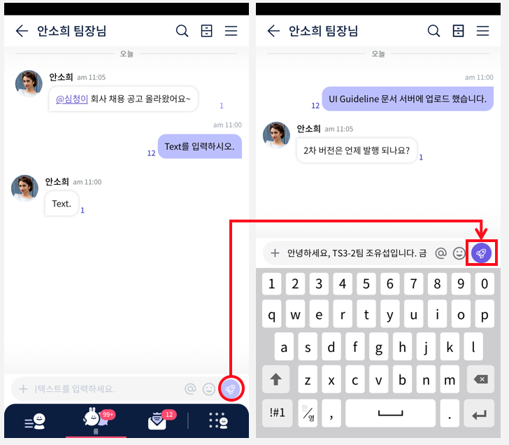 1) 메신저 앱에서 Text 입력 값이 있을 때 전송 Button 활성화되는 Affordance