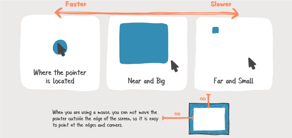 - 멀리 있을수록, 버튼이 작을수록 클릭하는데 시간이 더 많이 걸림