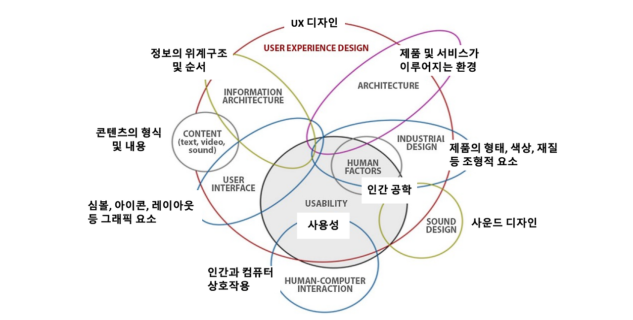 UX를 둘러싸고 있는 요소로는 그 범위가 대체로 넓은 편인데요, 제품의 외적 디자인뿐만 아니라 사용자와 제품/시스템 간의 상호 작용 방법이나 시각적 디자인, 콘텐츠, 사운드 등 다양합니다.