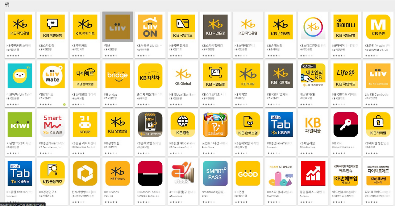 2) 플레이스토어 내 "KB" 검색 결과에 나오는 과도한 앱들